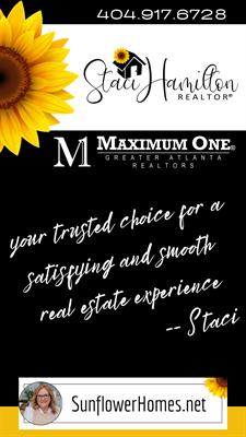 Staci Hamilton-REALTOR 404-917-6728 or Staci@SunflowerHomes.net